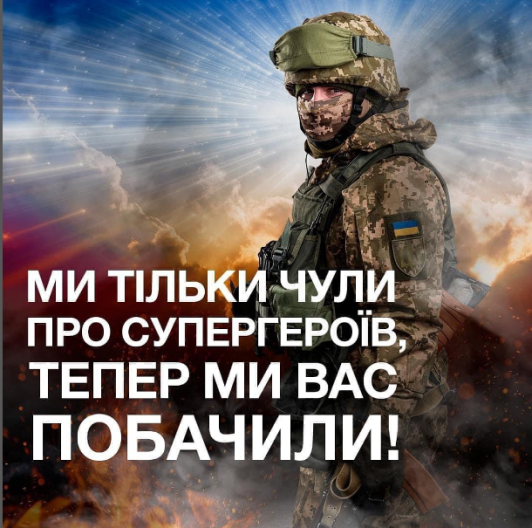 Ви неймовірні! Весь світ захоплюється вашою силою,мужністю та відвагою! Попри сильну агресію та невпинний наступ російської армії, ви тримаєте небо, землю, воду під контролем, чините шалений опір, на який ворог, вочевидь, не розраховував. Ми знаємо, що Україна була, є і буде, українці переможуть і будуть жити на своїй землі, бо такої оборони не здолає ніхто і ніколи!